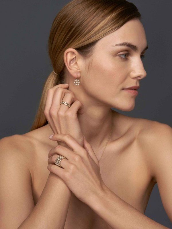 ARISTOS kolekcijos žiedas, pagamintas iš 750 prabos aukso su natūralias šampaniniais deimantais. Bendras deimantų svoris yra apie 1.2 karato.
