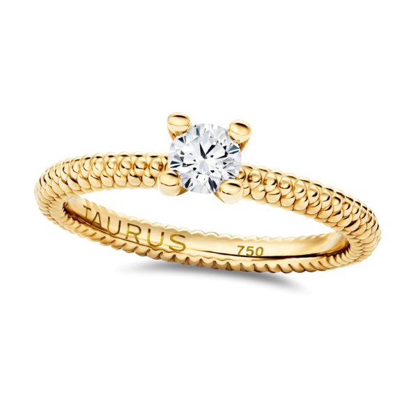 Nesibaigiančios istorijos kolekcijos žiedas, pagamintas iš 750 prabos aukso su F-G, VS natūraliu 0,25 karato deimantu.