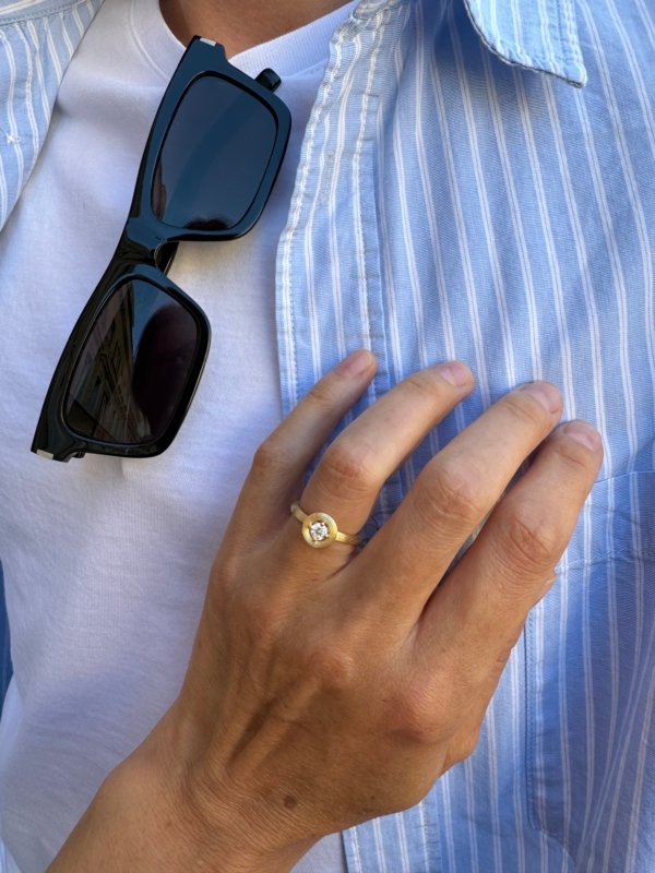 Kai ieškote kažko išskirtinio. NOA kolekcijos žiedas, pagamintas iš 750 prabos aukso su Hearts & Arrows šlifavimo, natūraliu deimantu.